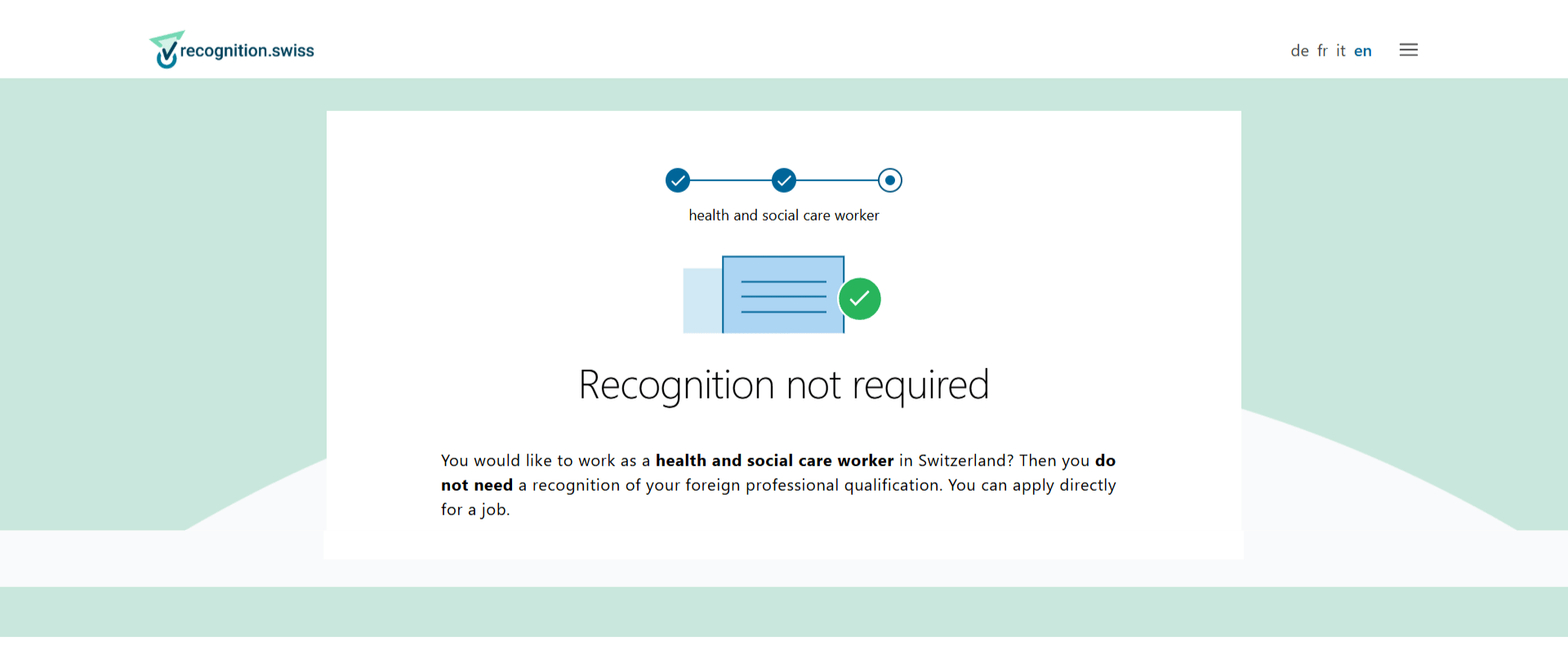 The SwissUK degree awarded by SIMI is recognised for employment in Switzerland without any additional procedures, as the position of Health and Social Care Worker belongs to the group of occupations that do not require a professional licence.