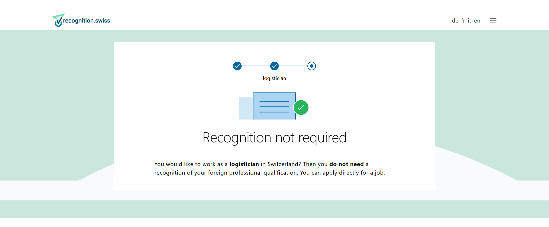 The SwissUK degree awarded by SIMI is recognised for employment in Switzerland without any additional procedures, as the position of Logistician belongs to the group of occupations that do not require a professional licence.